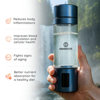 AmaraPure™ infuse votre eau avec jusqu'à neuf fois plus d'hydrogène thérapeutique grâce à sa bouteille d'eau à hydrogène, transformant une hydratation régulière en un puissant allié contre le stress oxydatif et les dommages causés par les radicaux libres. 1 à 3 bouteilles par jour suffisent à booster votre corps, vous laissant plein d'énergie, ultra-hydraté et prêt à affronter toutes les épreuves.