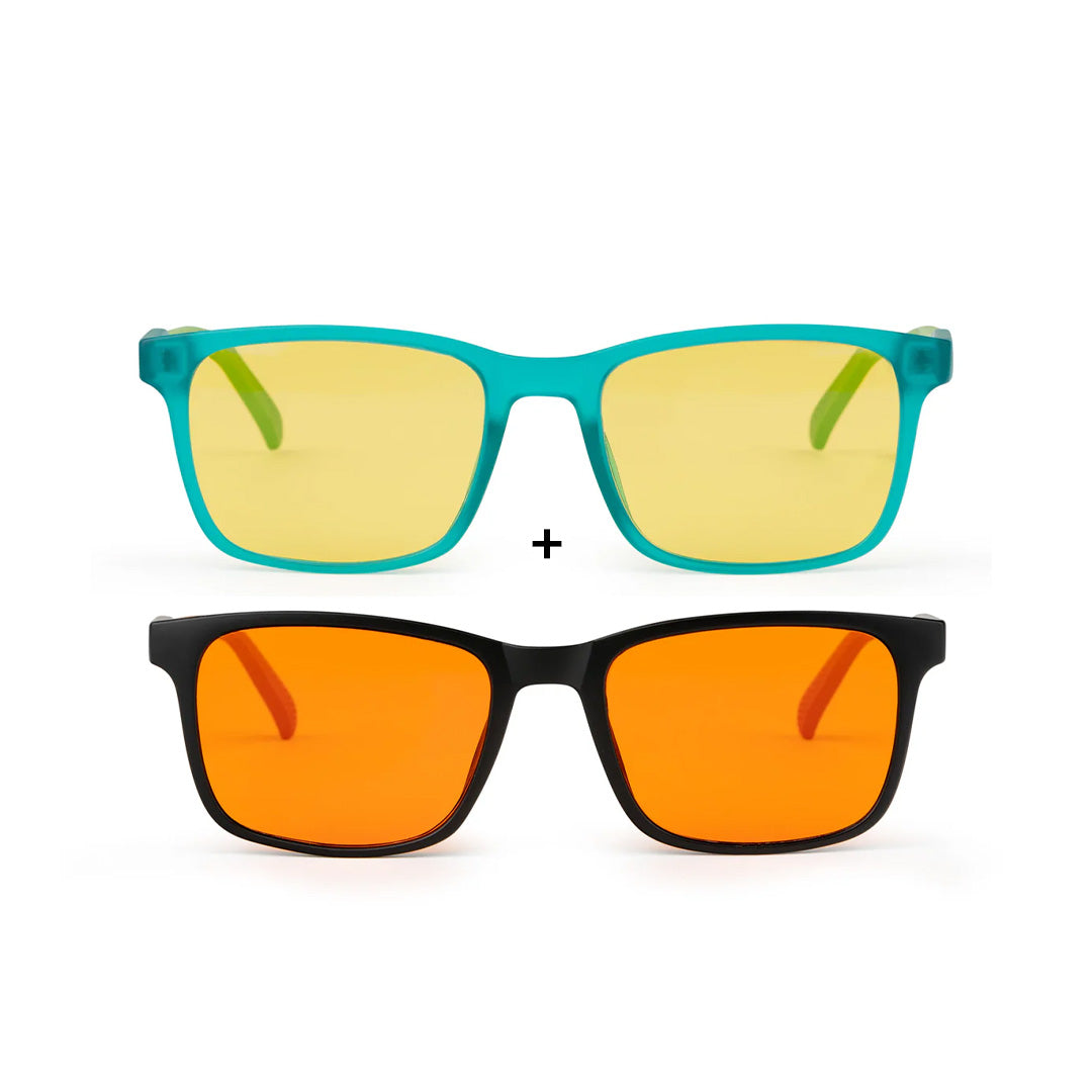 Blåt lys holder børn vågne. Med vores briller falder de hurtigere i søvn og vågner mere friske.