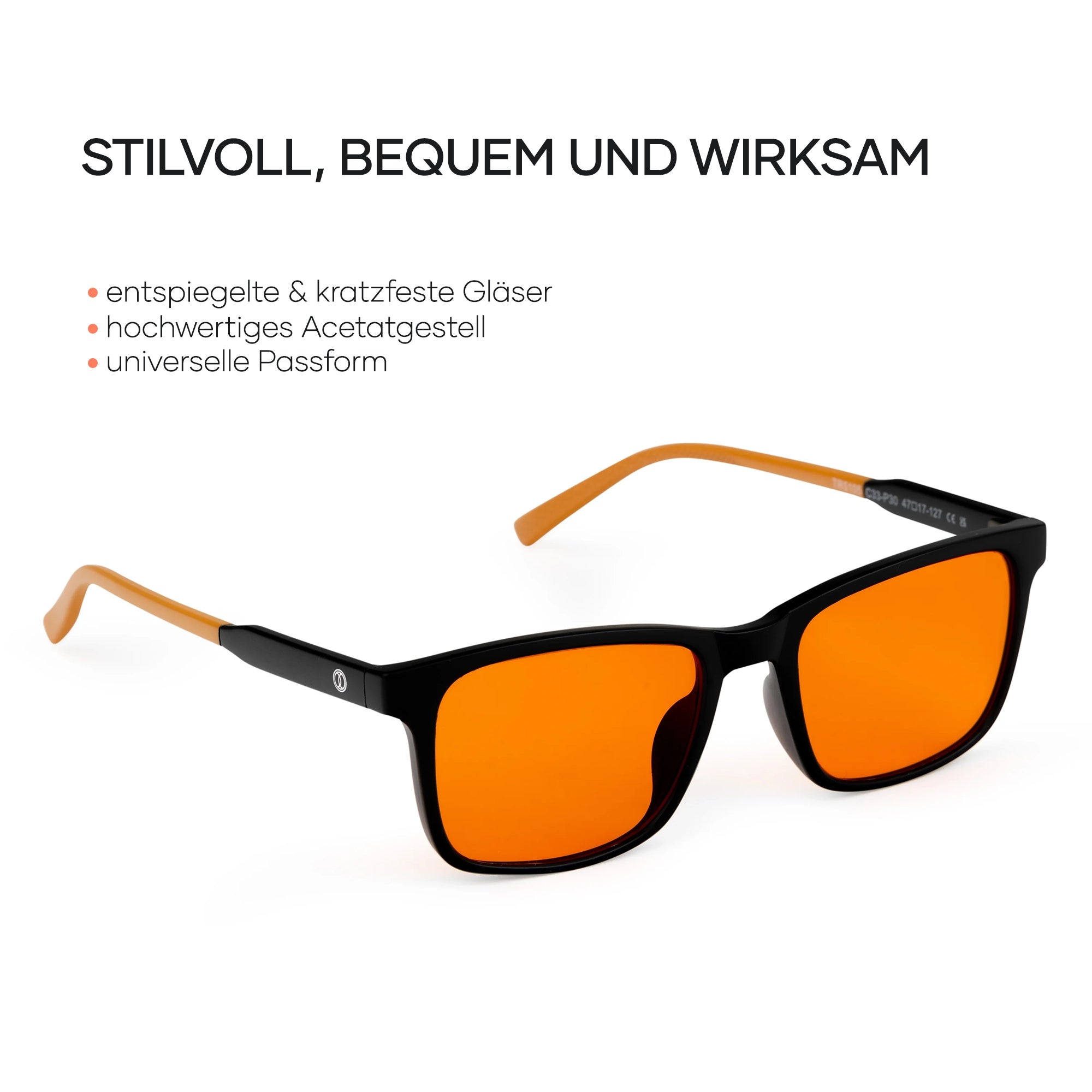 Unsere Blaulichtbrillen helfen, müde Augen, Kopfschmerzen und Unruhe vor dem Schlafengehen zu reduzieren. Für Konzentration am Tag. Für Ruhe am Abend.