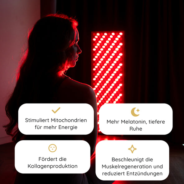 Leistungsstarke Rotlichttherapie für zu Hause, die Ihre Haut, Regeneration und Energie unterstützt.