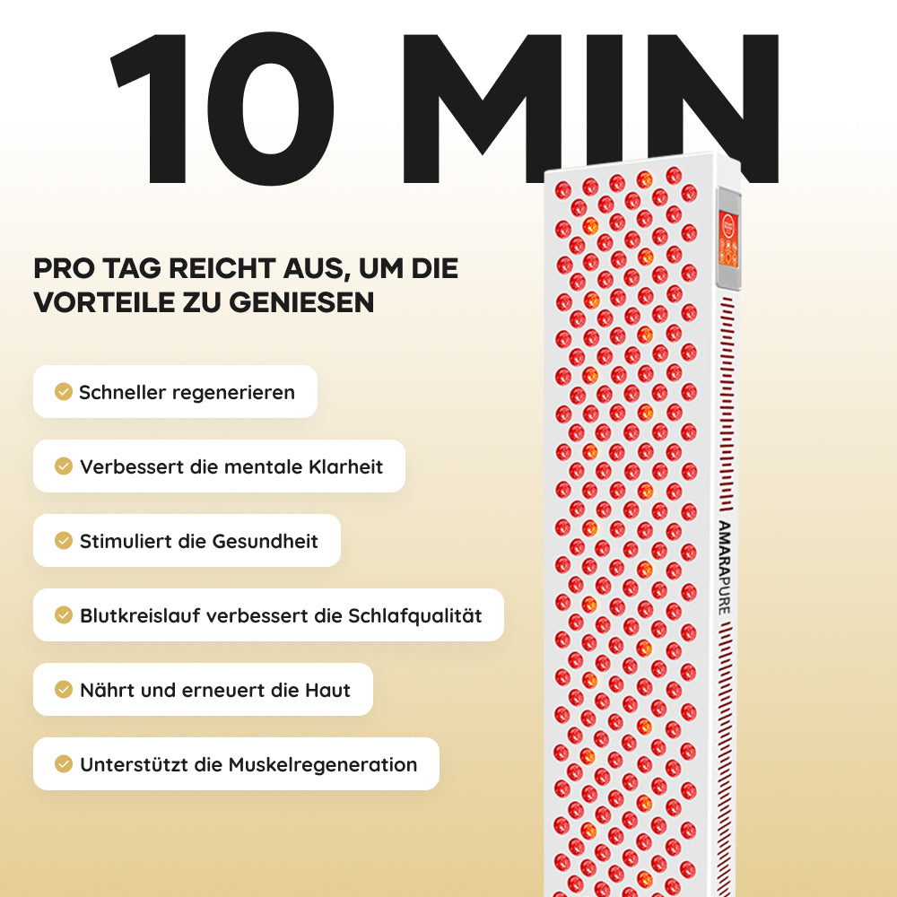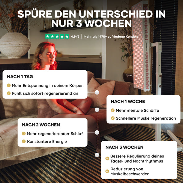 • Mehr Energie & besserer Schlaf Bei regelmäßigen Sitzungen können bereits kurze tägliche Behandlungen einen Unterschied machen.