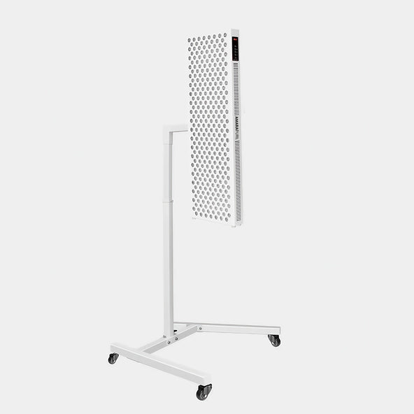 Dieser stabile, verstellbare Ständer wurde für die optimale Nutzung Ihres Rotlichtpanels entwickelt. Positionieren Sie das Panel horizontal für Ganzkörperbehandlungen oder passen Sie die Höhe (80–140 cm) für gezielte Behandlungen von Gesicht, Brust oder Knien an. Dank der Rollen lässt sich der Ständer einfach und sicher verschieben.