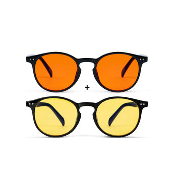 Use the appropriate glasses depending on the time of day — Daygold in daylight or for light activities, Midnight in bright artificial light in the evening. Both glasses protect your eyes from blue light emitted by LED and other artificial light sources.