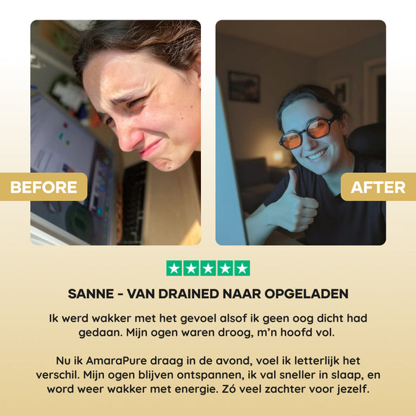 Onze blauwlichtbrillen bieden wetenschappelijk bewezen bescherming voor uw ogen en uw slaap. Ze zijn ideaal voor iedereen die veel tijd voor schermen doorbrengt, zowel overdag als 's avonds.
