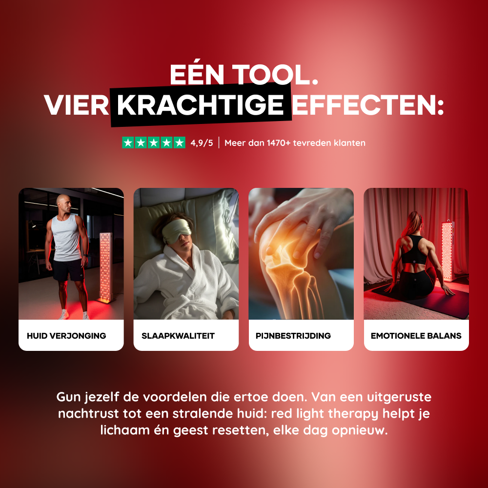 Krachtige, thuisgebruikbare roodlichttherapie die je huid, herstel en energie ondersteunt.