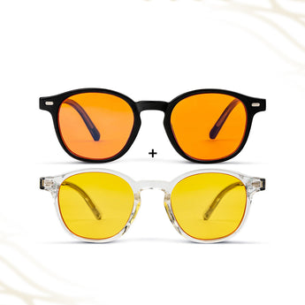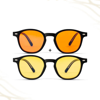 Met de AmaraPure All-Day Protection Bundle ontvang je zowel de Daygold als de Midnight blauwlichtbril. Samen bieden ze volledige bescherming voor je ogen, je focus en je slaap — precies op de momenten dat je het nodig hebt. Ideaal voor iedereen die veel tijd doorbrengt voor schermen, zowel overdag als in de avond.