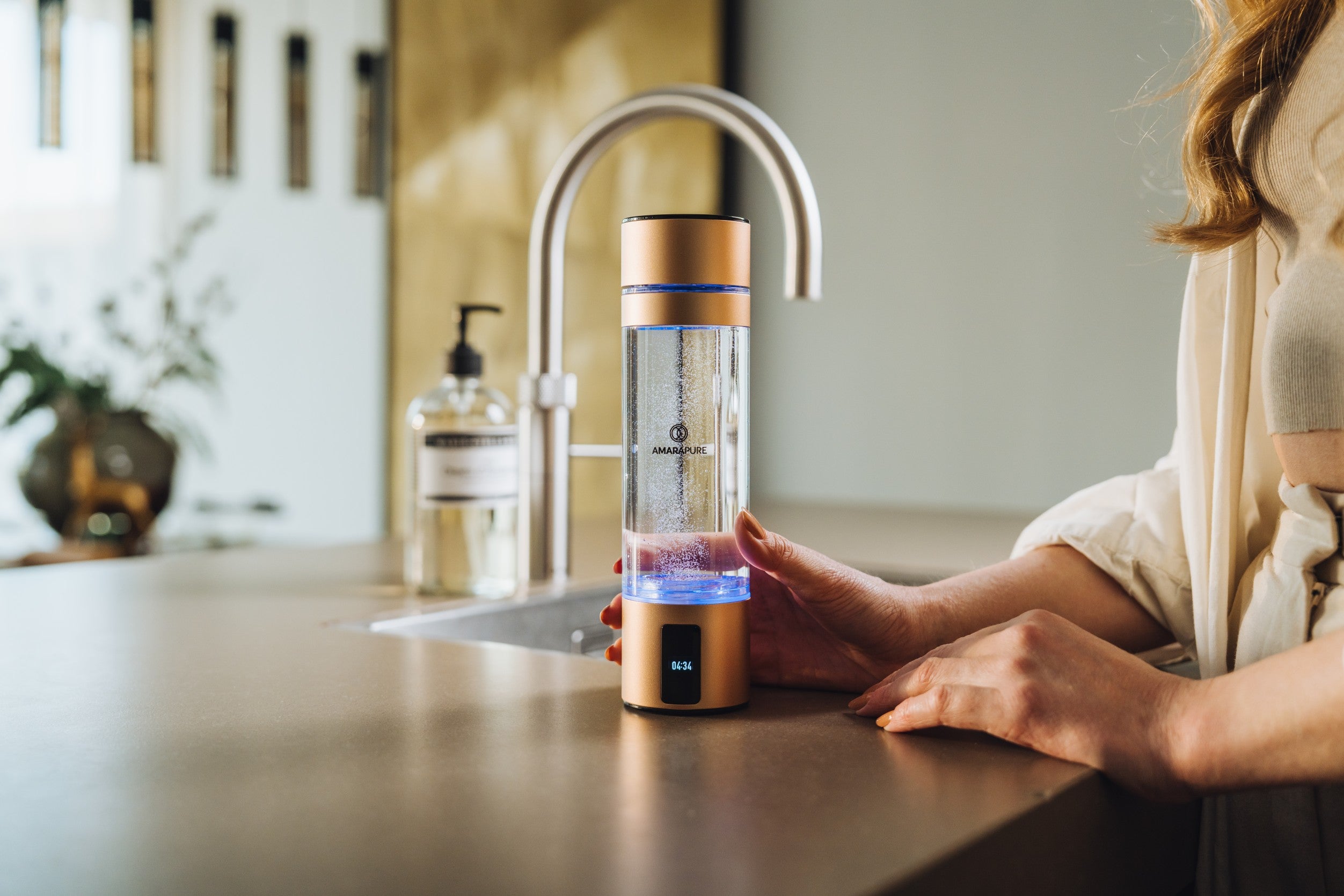 Libérez le pouvoir de l'eau. L'AmaraPure™ Aman enrichit votre eau potable en hydrogène moléculaire en seulement 3 minutes, pour plus d'énergie, une récupération plus rapide et une nutrition cellulaire en profondeur. Compact, élégant et toujours à portée de main.